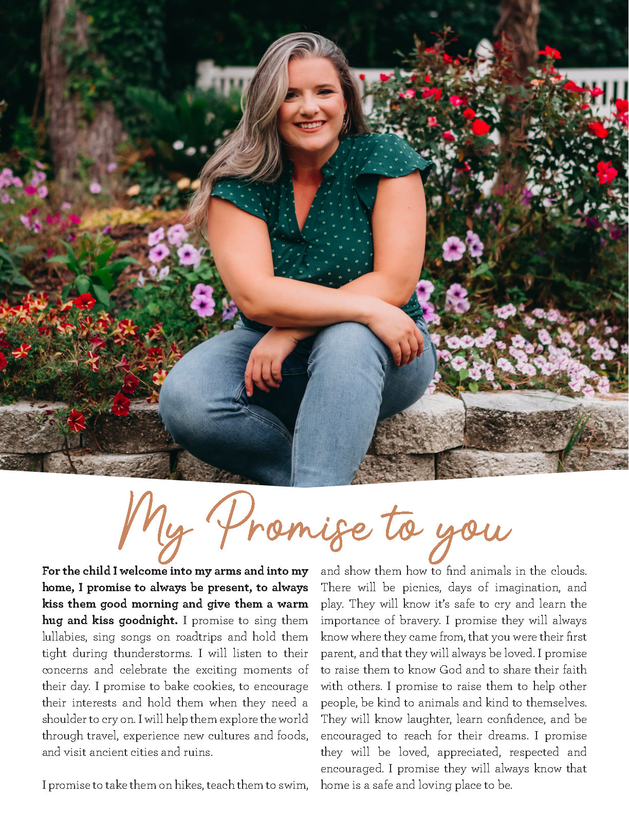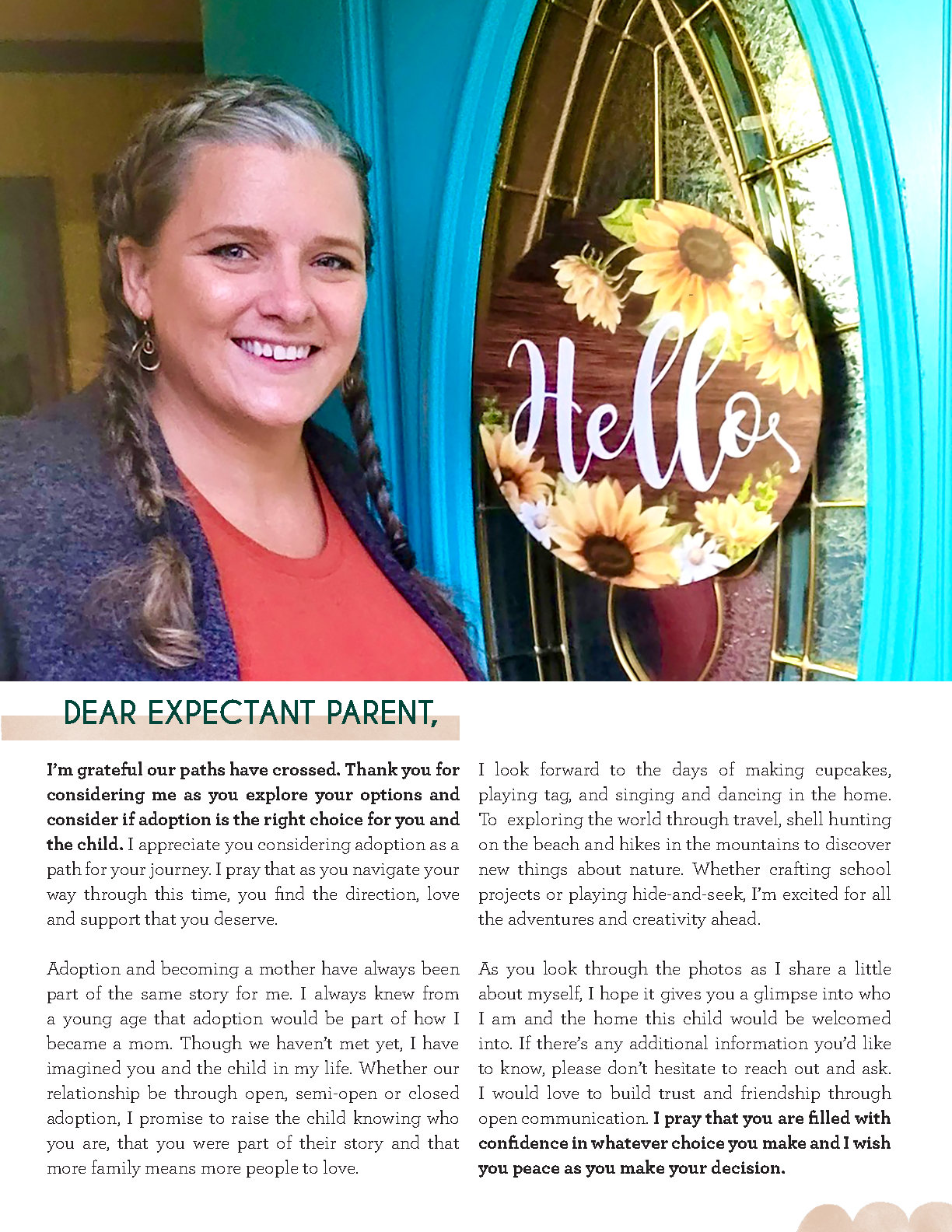 I’m grateful our paths have crossed. Thank you for considering me as you explore your options and consider if adoption is the right choice for you and the child. I appreciate you considering adoption as a path for your journey. I pray that as you navigate your way through this time, you find the direction, love and support you deserve.